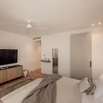 Mit einer Klimaanlage ausgestattet, bietet diese Unterkünfte einen Balkon, einen Ankleidebereich und eine Sitzecke mit Blick auf den Garten. Das Apartment verfügt über ein Bidet, eine getrennte Toilette und eine Dusche für Ihren Komfort. Darüber hinaus gibt es im Badezimmer einen Haartrockner, Morgenmäntel und Badelaken.